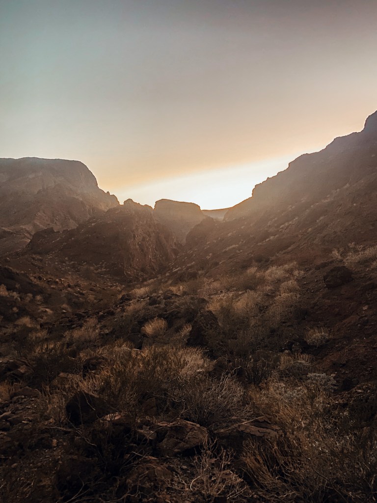 The trail starts at a parking lot [ park here: Willow Beach, AZ 86445]. There are three trails, and you should take the one that goes under the freeway bridge. Then, you’ll need to go left as it goes up the mountain to the springs. The other path to the right is closed because the ladder is broken and hasn’t been fixed yet.